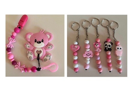 - Детские аксессуары привлекают своим красивым видом, интересным и стильным дизайном. Особого внимания заслуживают брелки из пищевого силикона на которые можно подвесить ключики от коляски или ящика с детскими вещами, маленькую игрушку или пристегнуть его на рюкзачок ребёнка.