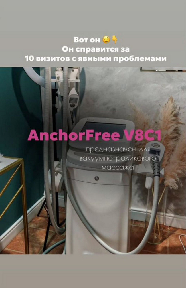 - Работаем на эффективном оборудовании AnchoreFree V8 C1, при соблюдении рекомендаций , результат заметен через несколько процедур. Массаж проводим по маслу