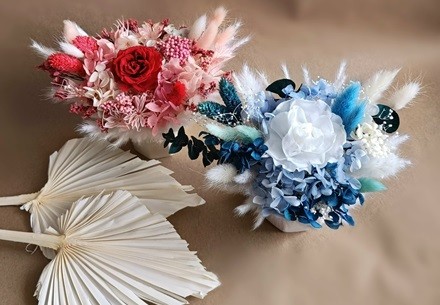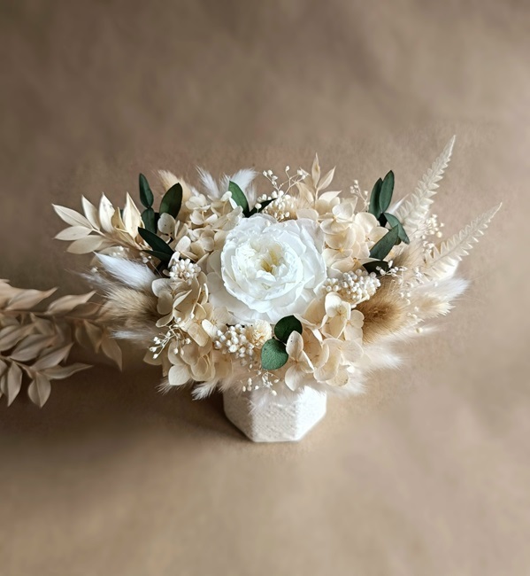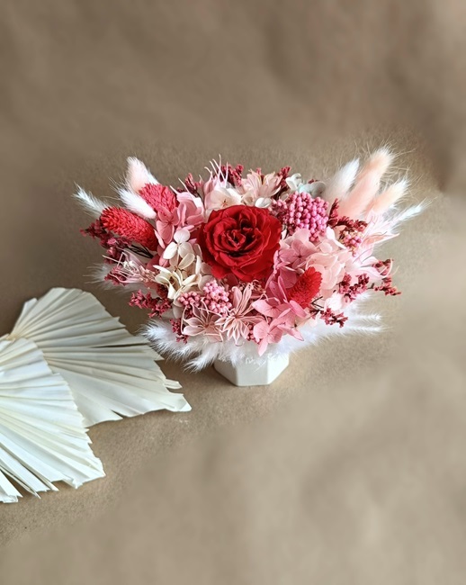 Букеты и композиции из сухоцветов и стабилизированных цветов. Стабилизированные цветы - это обработанные живые цветы. Путём специальной обработки природный сок этих растений заменён на раствор на основе глицерина, за счёт чего они сохраняют эластичность, цвет и форму на несколько лет.