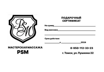 - Предъявителю купона (кода купона) до оказания услуги предоставляется разовое право скидки 50% подарочный сертификат на общий классический массаж или массаж спины и шейно-воротниковой зоны в мастерской массажа «PSM».