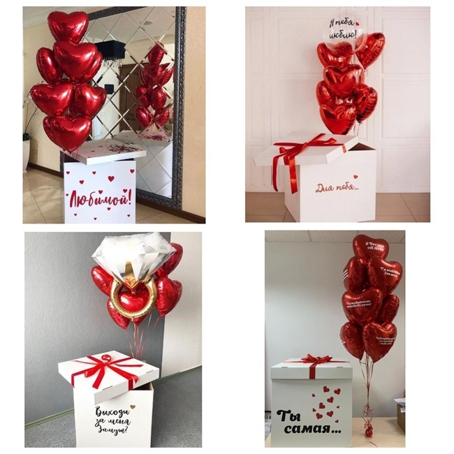 Коробка-сюрприз с вашей надписью, с шарами внутри: