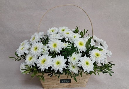 - Большая корзина с хризантемами и зеленью - 2400 рублей вместо 4800.