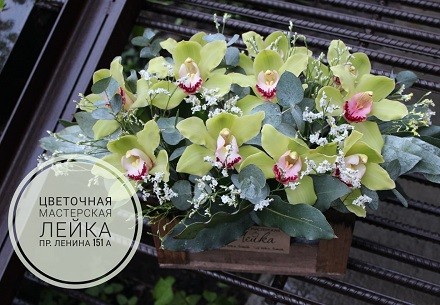 Большой ящик с орхидеями и лимониумом со скидкой 50% в "Лейке" на проспекте Ленина