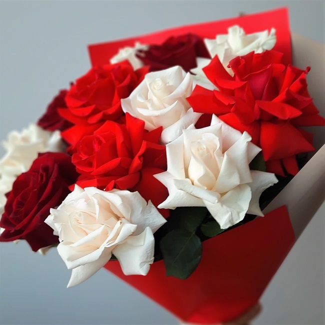 - 9 Пионовидных или Французских роз в ленте - 2025 рублей вместо 4050.