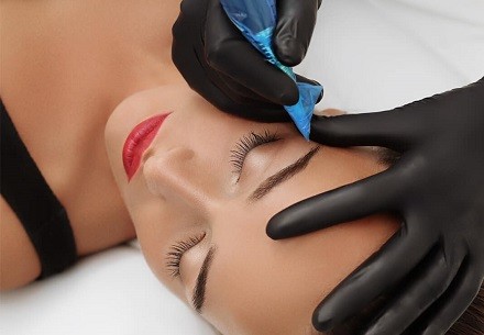 В ходе работы мастер применяет профессиональное оборудование — аппарат с тонкими мультииглами, которые внедряют пигмент в кожу на глубину 0.5-1.5 мм.