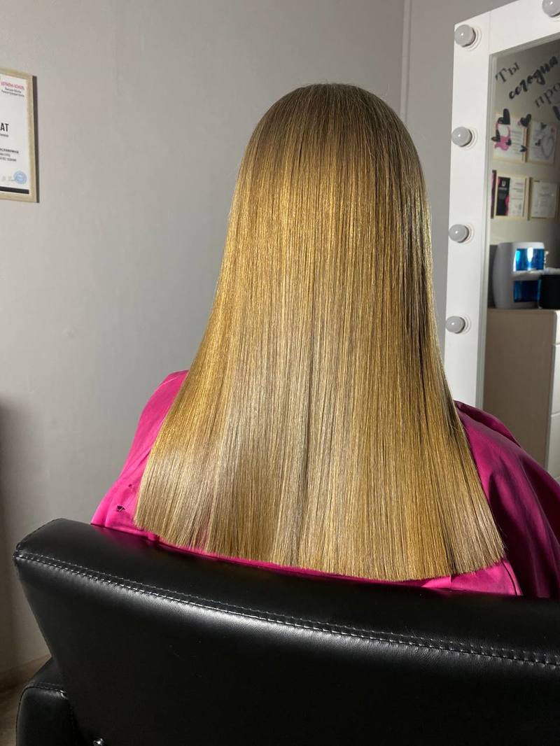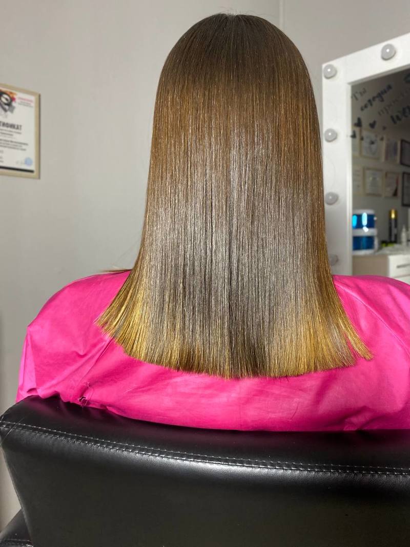 Ботокс волос это процедура разглаживания и заполнение пустот в структуре волоса. Срок носки 1,5 месяца. Оставляет естественный объем .