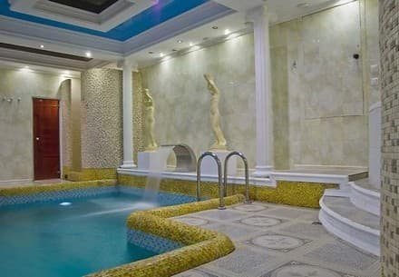 - большой бассейн (4х5м, глубиной до 1,7 м), системой очистки воды, подсветкой, водопадом и противотоком;